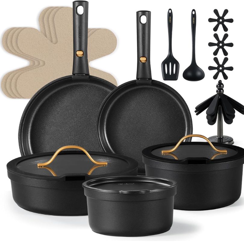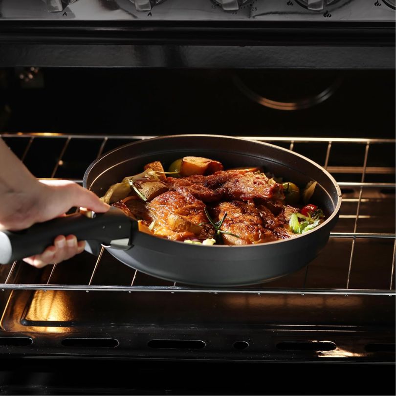 Gresinė indų kolekcija ir nelipni virtuvės indų baterija suteikia išskirtinę kulinarinę patirtį. Po kiekvieno naudojimo valymas bus labai paprastas po karšto vandens srove. Mėgaukitės nuostabiais rezultatais ir patogumu, kurį suteikia mūsų rinkinys.