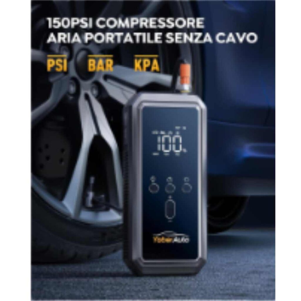 Il booster di avviamento YA70 non si limita ad avviare il motore del veicolo, ma è anche in grado di gonfiare pneumatici in situazioni d’emergenza.