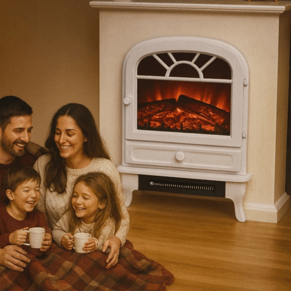 La fiamma 3D imita la magia di un vero fuoco in inverno; il termostato regolabile fino a 30° e
