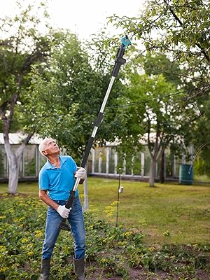 Grazie all’asta estensibile, puoi lavorare in sicurezza raggiungendo i rami più alti senza dover ricorrere a scale o arrampicate.