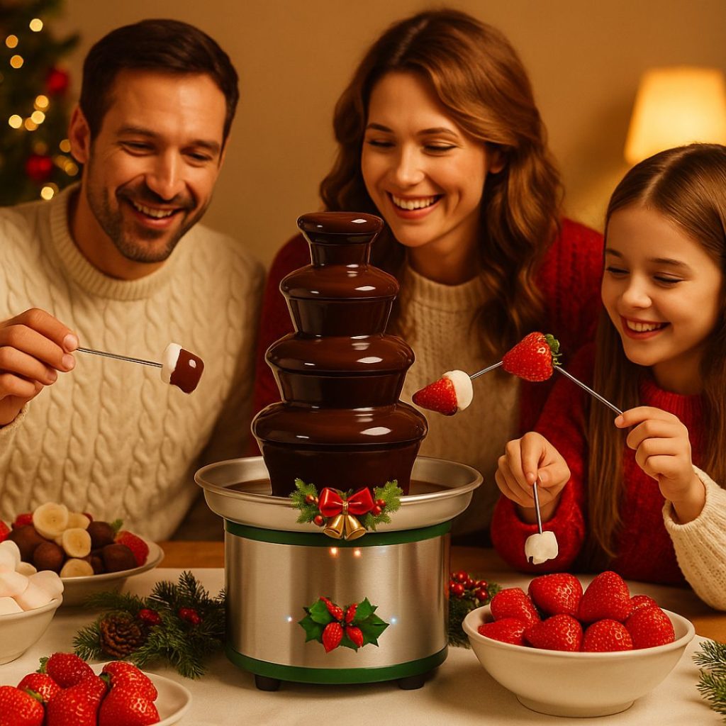 Fontána čokolády sa stane srdcom vašich Vianoc – miestom, kde sa stretáva rodina, láska a sladká chuť radosti