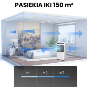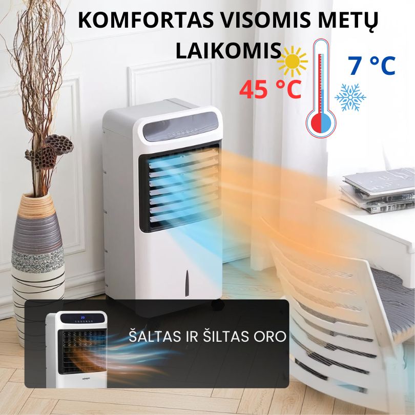 Jis šildo, vėsina ir sausina patalpas naudodamas tik vieną nešiojamą įrenginį, be vamzdžių ar sudėtingos instaliacijos.