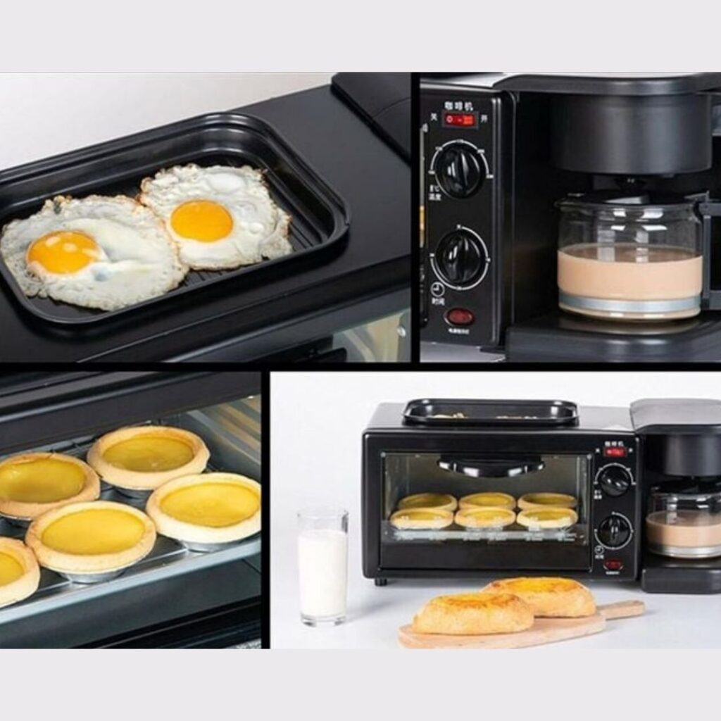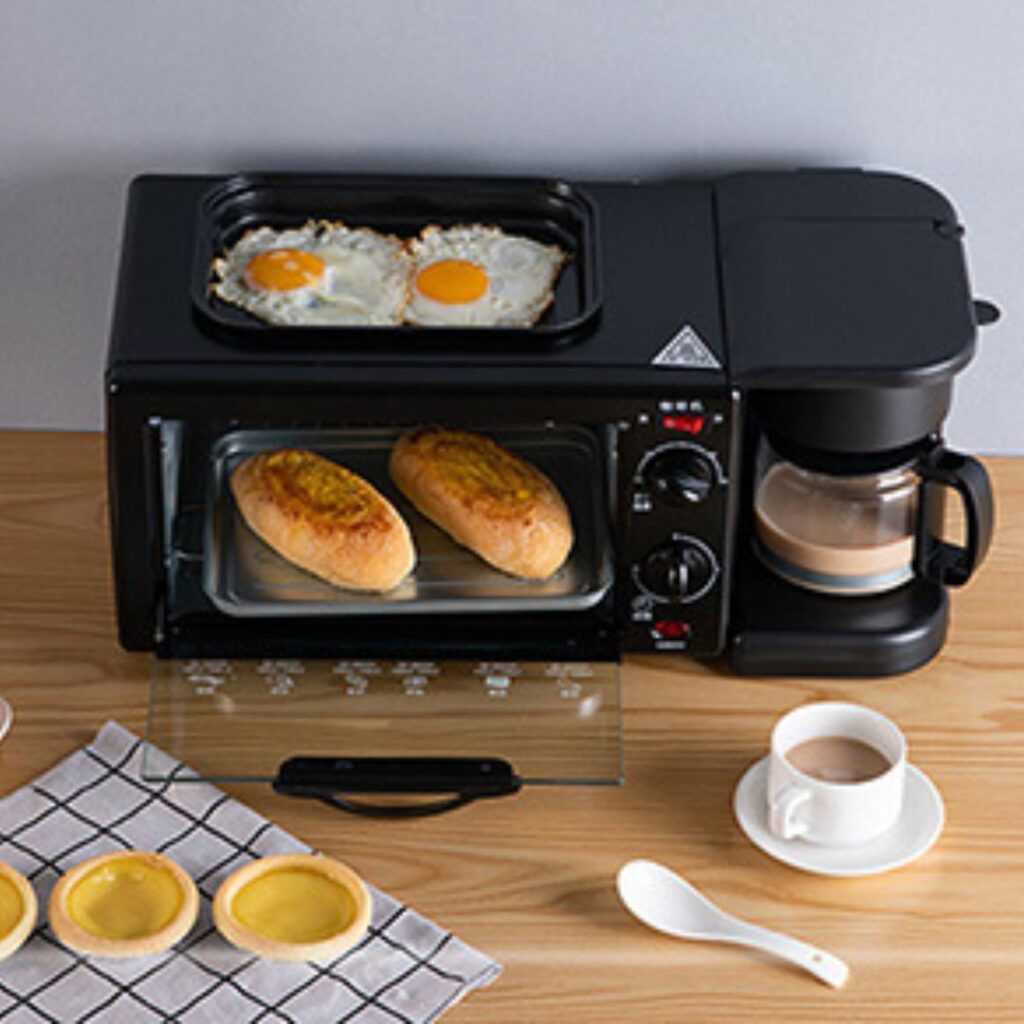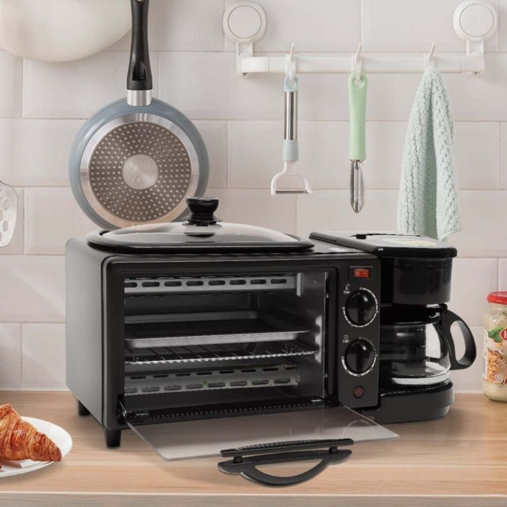 Forno, placa e máquina de café numa solução compacta! Poupe espaço, reduza o seu tempo para metade e desfrute de um pequeno-almoço completo todas as manhãs!