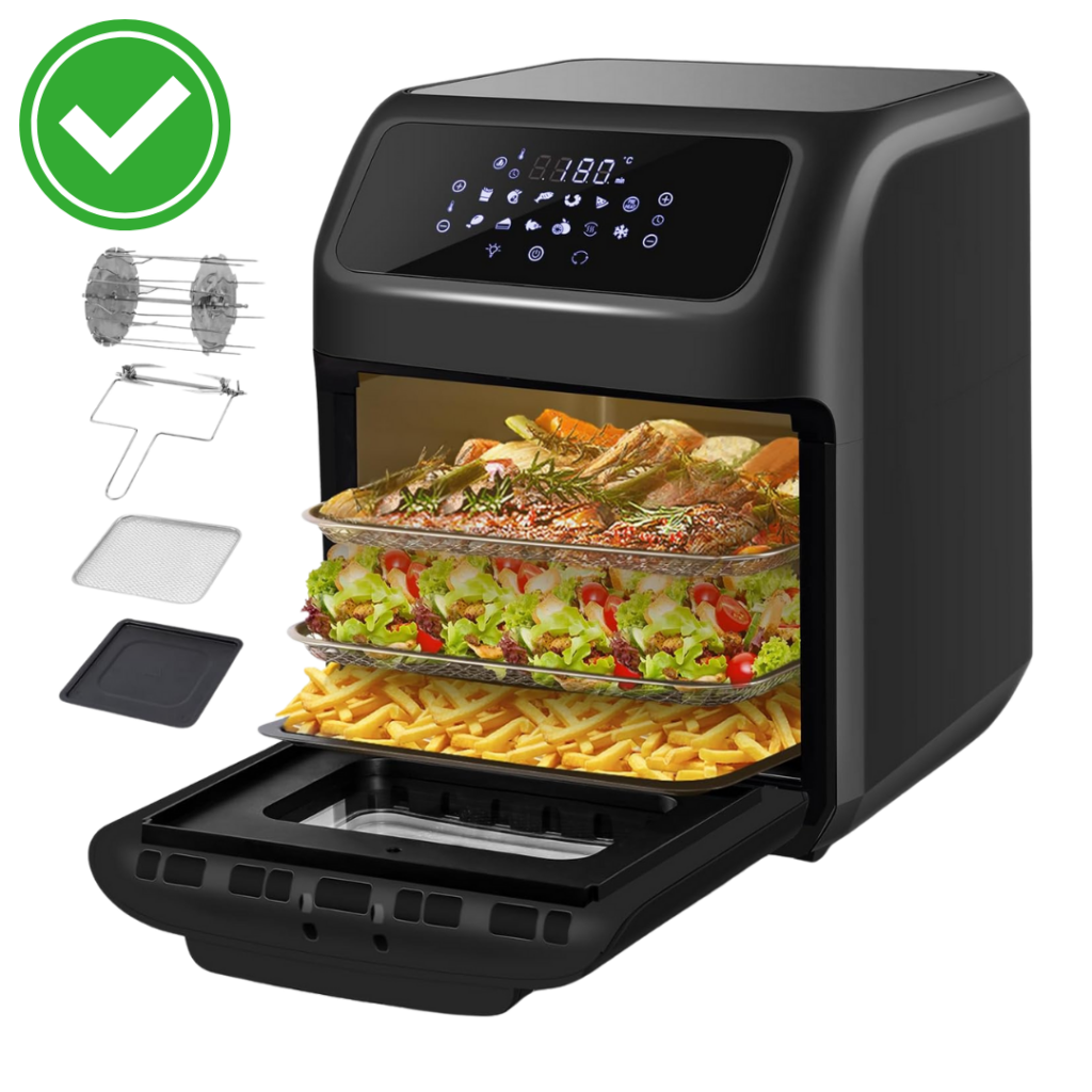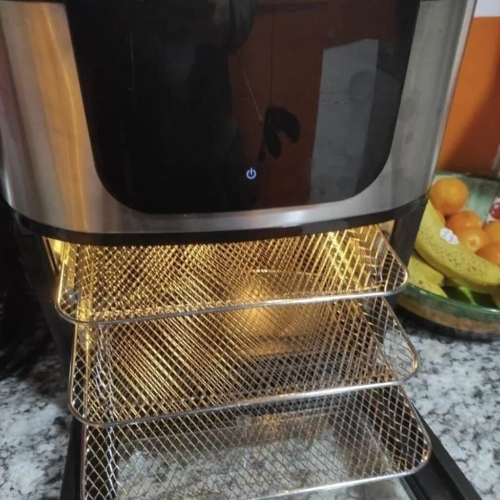 Pagaliau būdas valgyti sveikai neprarandant skonio. Naudoju kasdien mėsai, žuviai ir lengviems garnyrams – be jokio aliejaus. Karštas oras iškepa traškiai išorėje ir minkštai viduje. Greita, be kvapo ir labai ekonomiška. Puikiai tinka tiems, kurie nori valgyti skaniai ir sveikai.