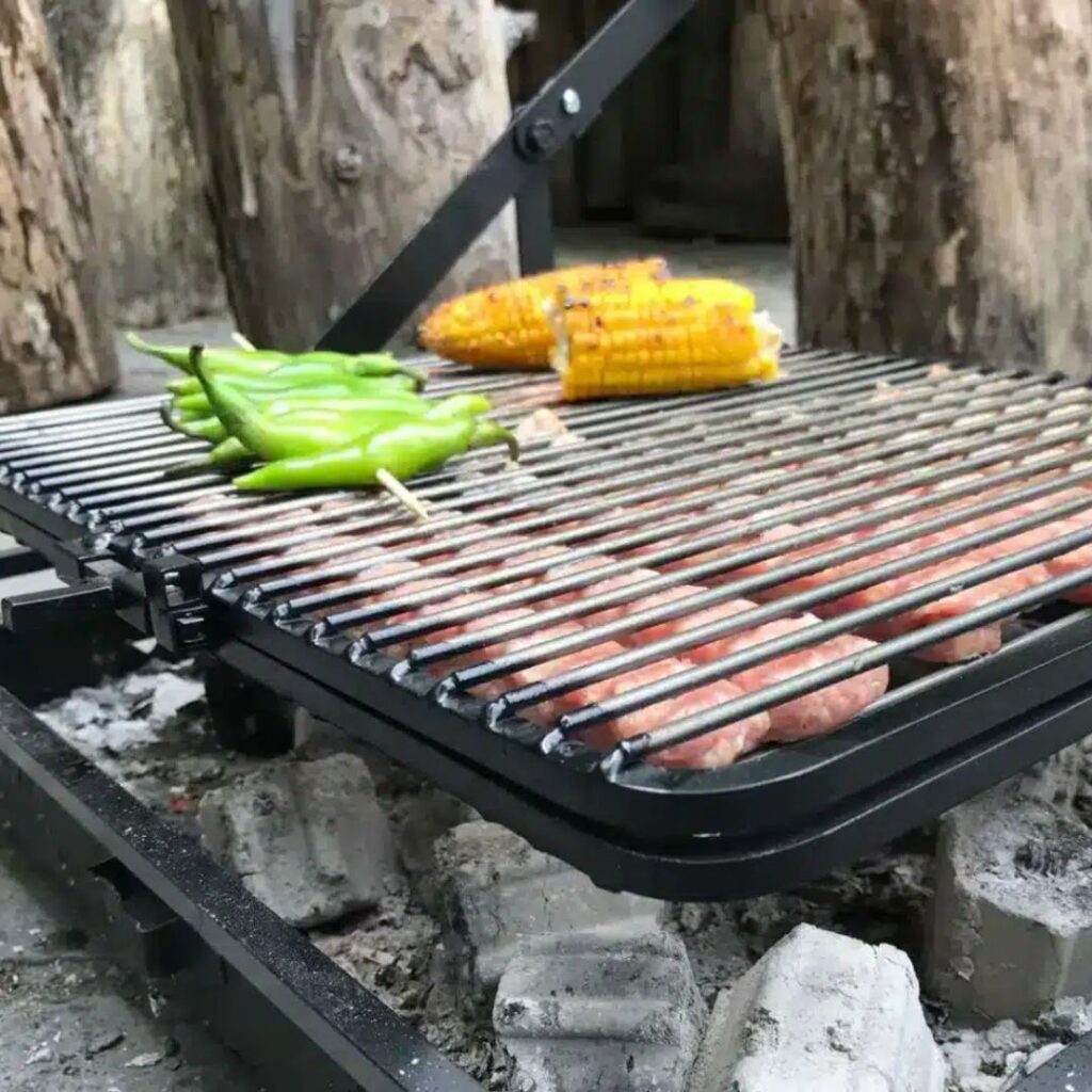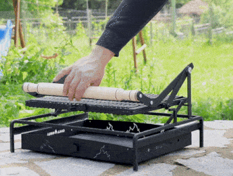 Dvojitý rošt s uzávěrem na šroub pevně drží jídlo, čímž zjednodušuje každý krok grilování. Maso, ryby, špízy – vše zůstává na místě, bez rizika pádu do uhlí.
