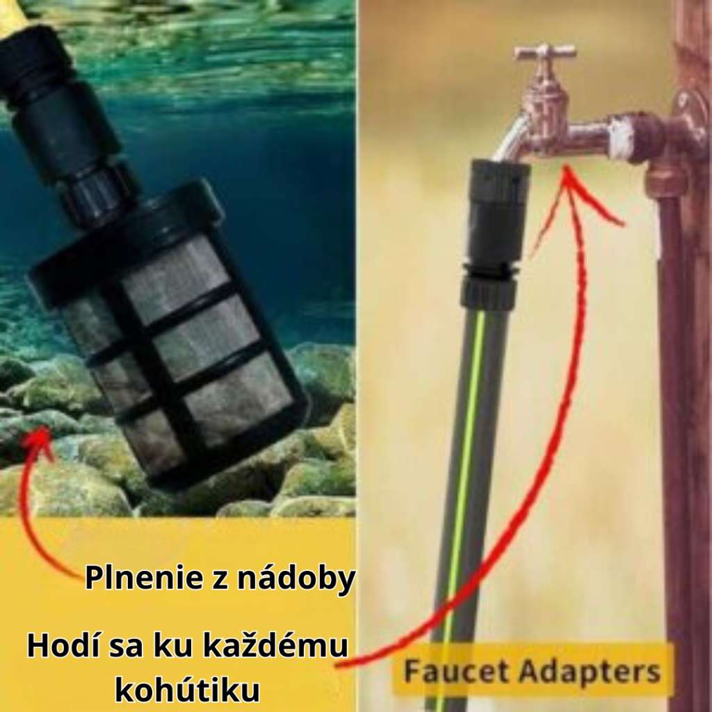 Vďaka univerzálnej súprave adaptérov na rýchle nastavenie je kompatibilný so všetkými vodovodnými prípojkami.
