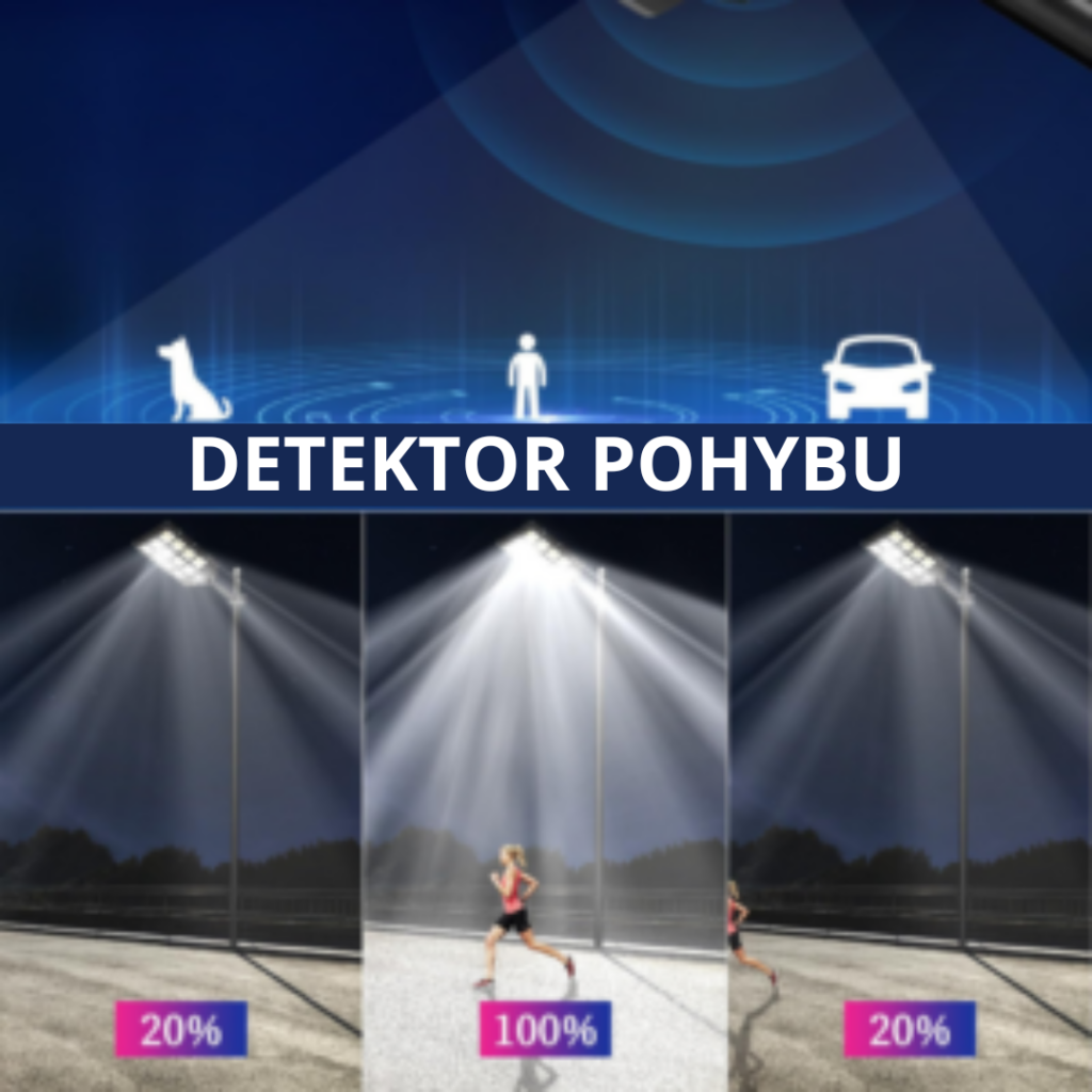 Záhradná lampa Sun Lamp má zabudovaný pohybový senzor, ktorý rozpozná votrelca až do vzdialenosti 10 metrov a aktivuje funkciu Maximum Power Light.
