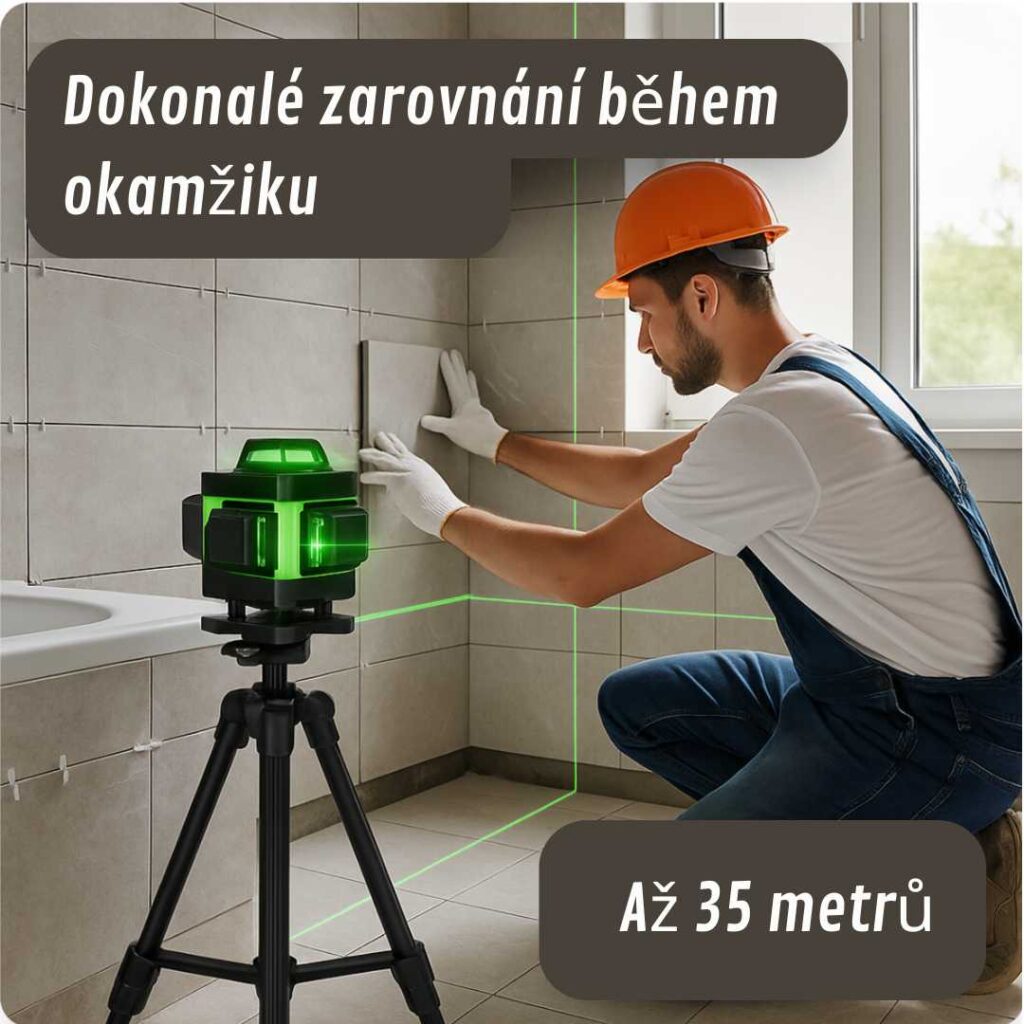 Byl jsem skeptický k samonivelaci, ale tento model mě přesvědčil. Zelené čáry jsou jasné i při silném odrazu. Jak je vidět na fotografii, položil jsem dlaždice perfektně na první pokus. Skvělý nákup!