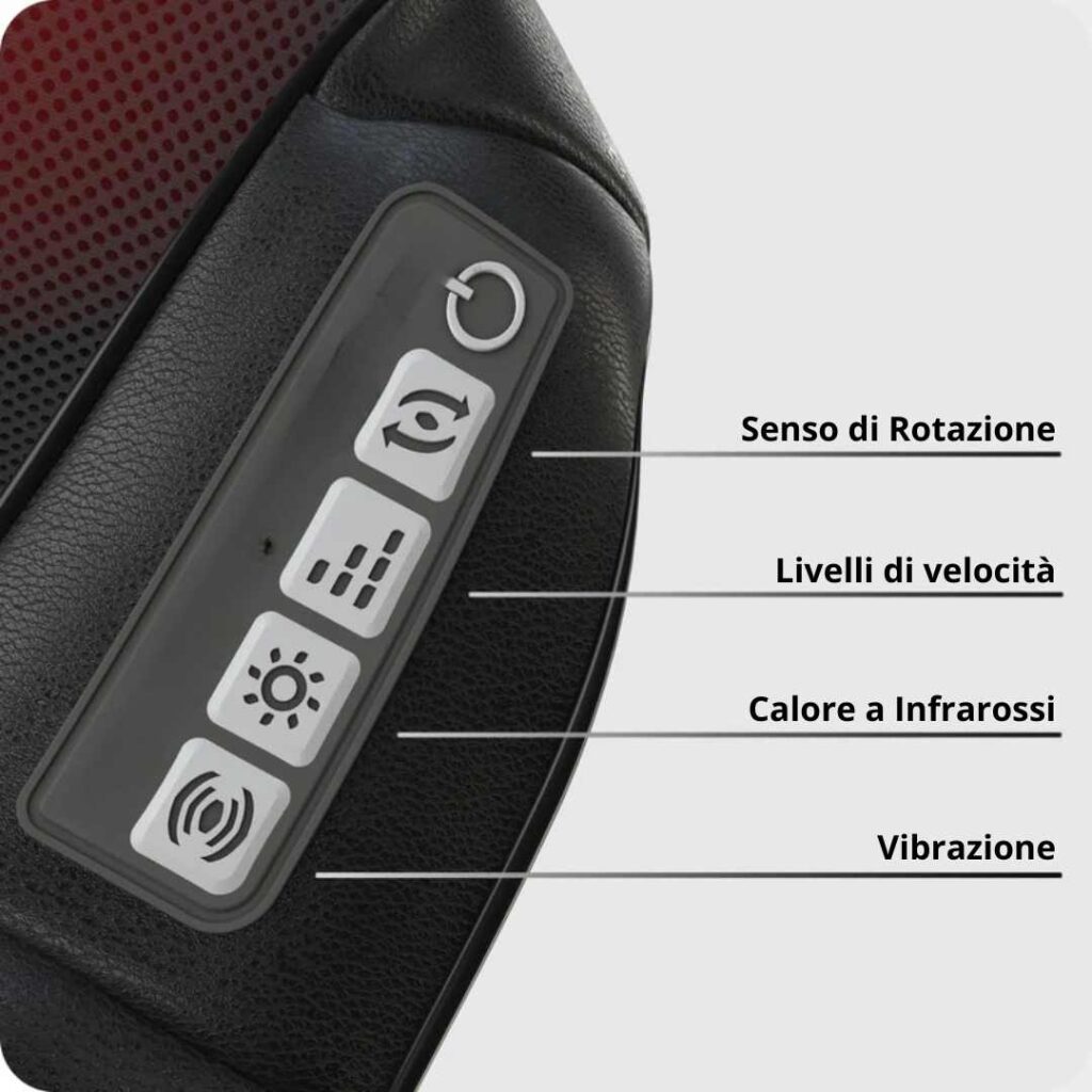 È possibile regolare la velocità e la direzione di rotazione delle testine massaggianti, attivare o disattivare la funzione di calore a infrarossi e selezionare il massaggio a vibrazione.