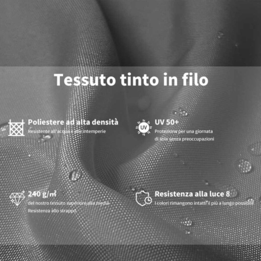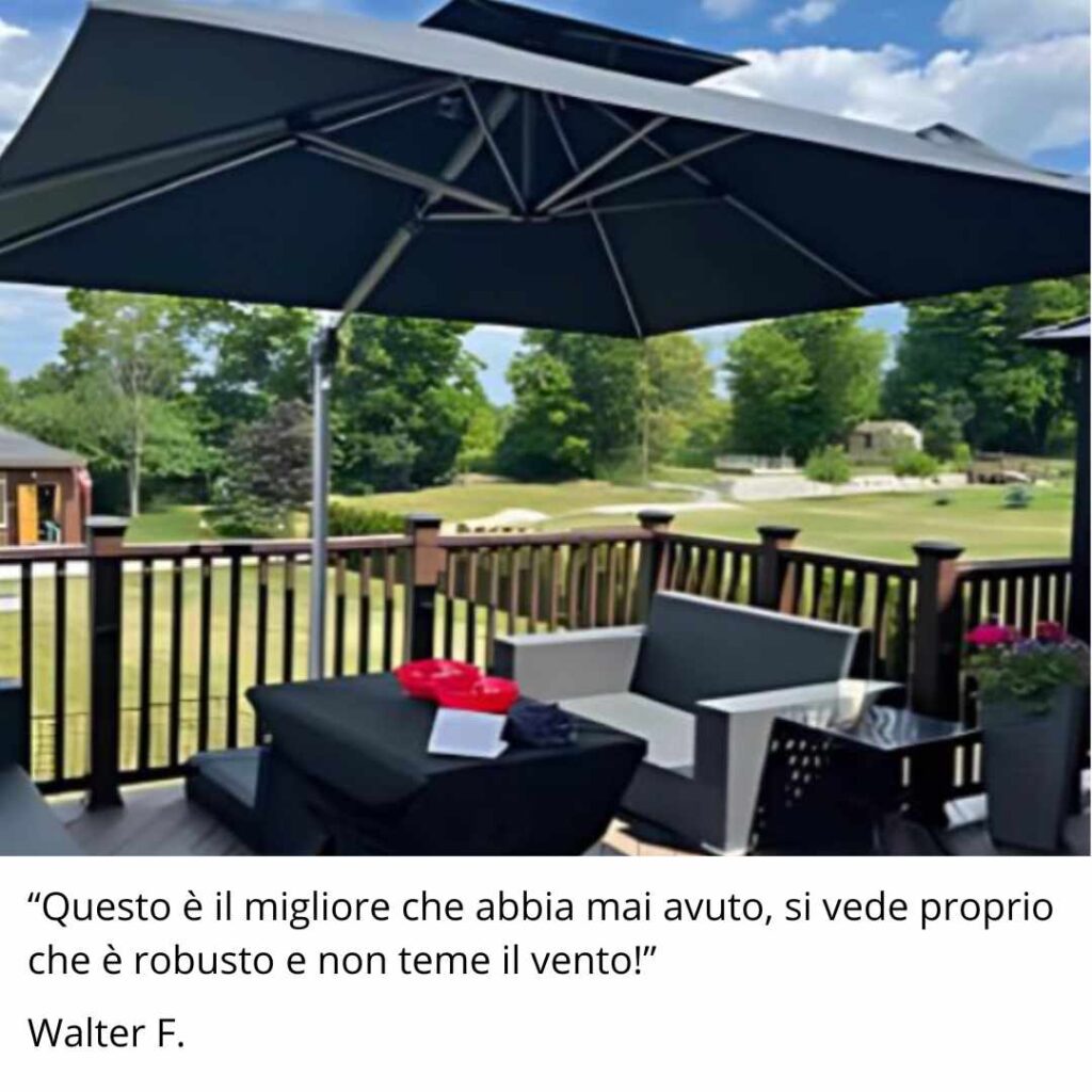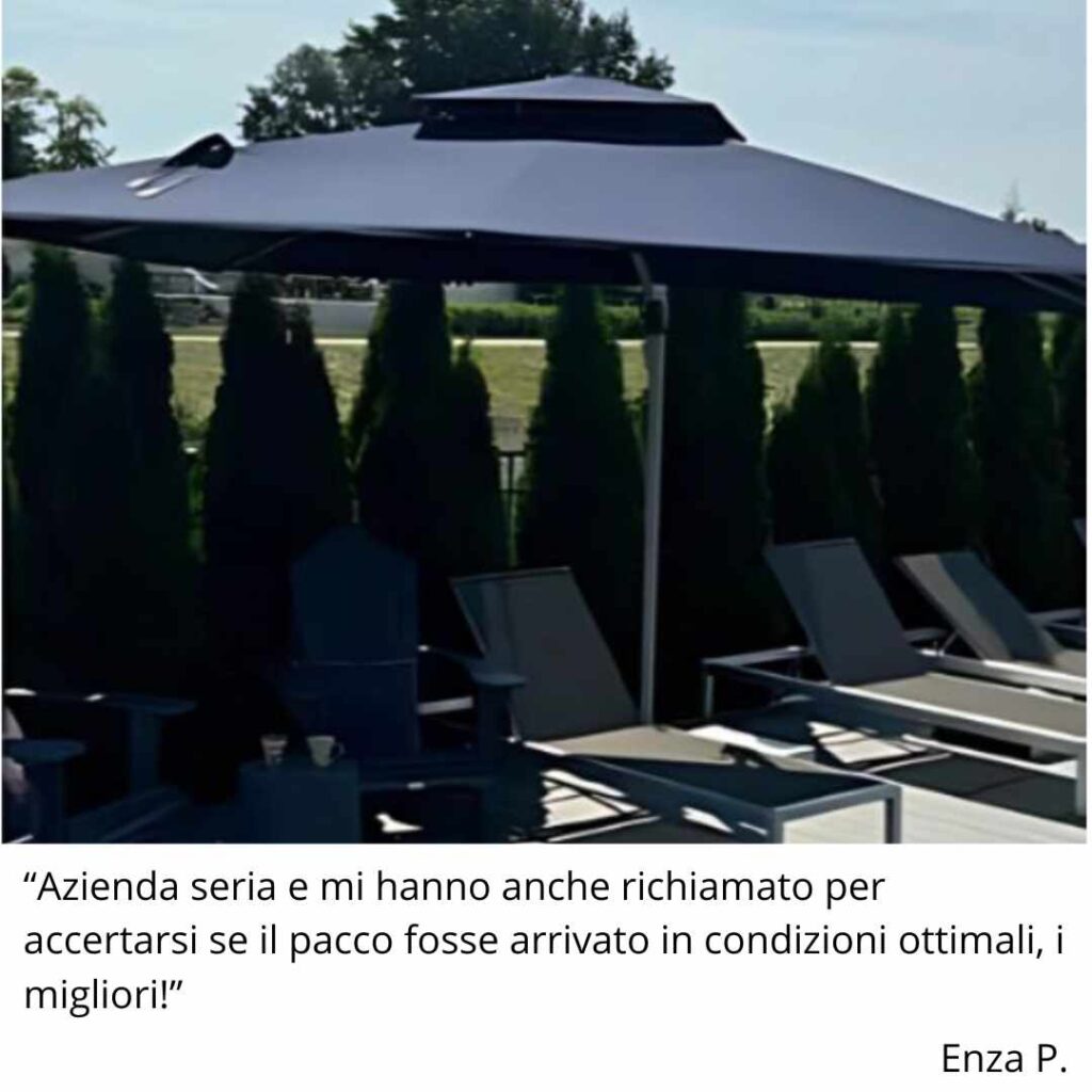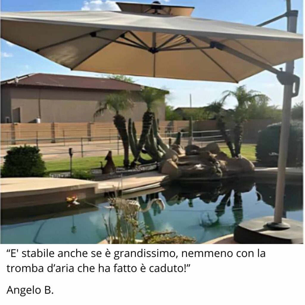 In più, puoi ruotarlo a 360° e inclinarlo come vuoi per seguire il sole durante la giornata e avere sempre l’ombra dove serve.