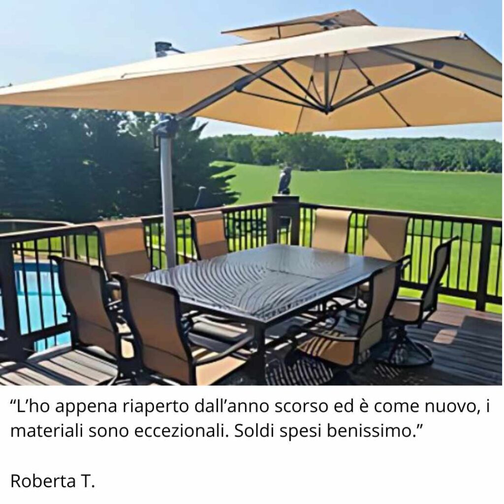 L’ombrellone comodo e funzionale che ti permette di pranzare o rilassarti all’ombra, al fresco, lontano dal caldo torrido dell’estate, che tu sia in giardino, in terrazzo, in piscina o in un bar.