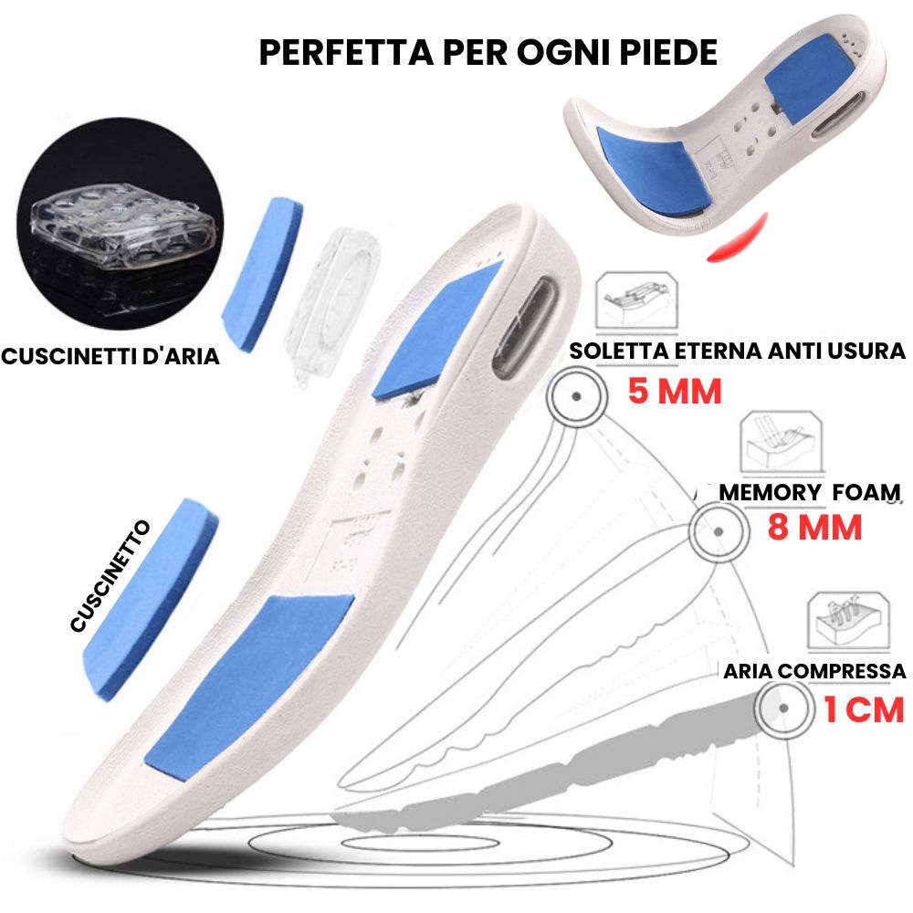 L’interno delle nostre calzature è realizzato con materiali soffici e accoglienti, che coccoleranno i tuoi piedi e contribuiranno a mitigare la stanchezza e il disagio causati da una giornata impegnativa o da infortuni ai piedi. Unisce il benessere e il comfort in un solo prodotto eccezionale.