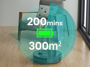 El robot aspirador N3 utiliza batería de 5200mAh, dura 200min o cubre 300㎡, Ideal para limpiar casas grandes.