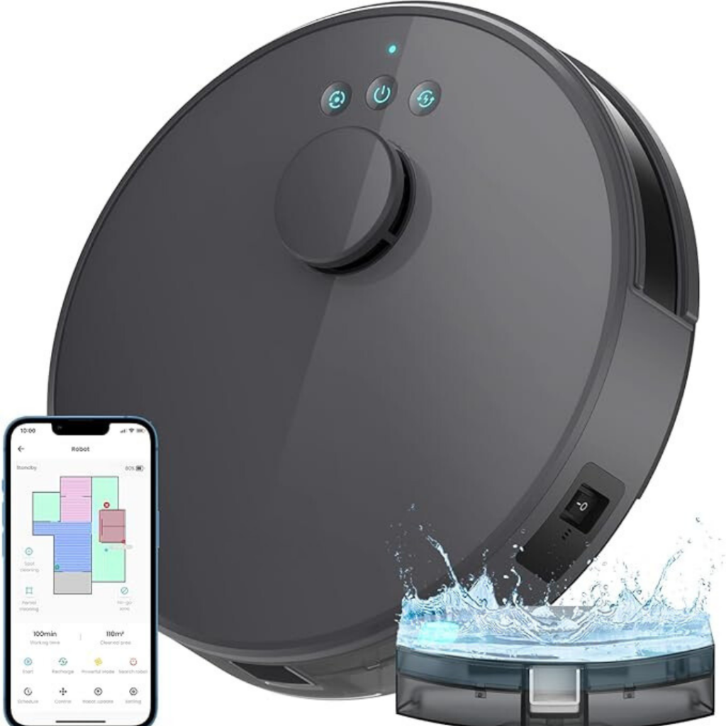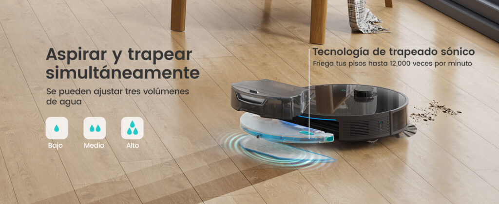 Robot aspirador y fregasuelos N3 viene equipado con un tanque de agua de 160 ml, lo que te permite barrer y fregar al mismo tiempo.
