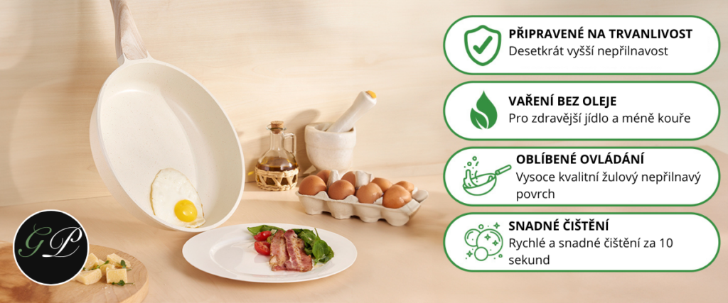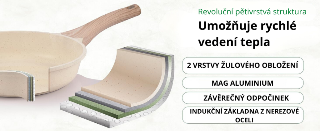 Jejich povrch s granitovou technologií a technologií Ultra Nonstick 5x zajišťuje vynikající nepřilnavost a snadné čištění po vaření. Tyto lité hliníkové pánve prémiové kvality s poklicí zaručují vynikající tepelnou vodivost.