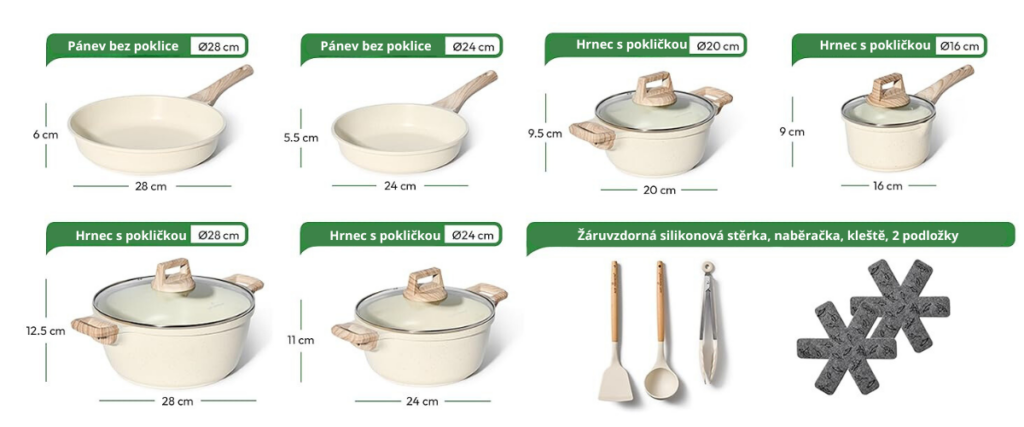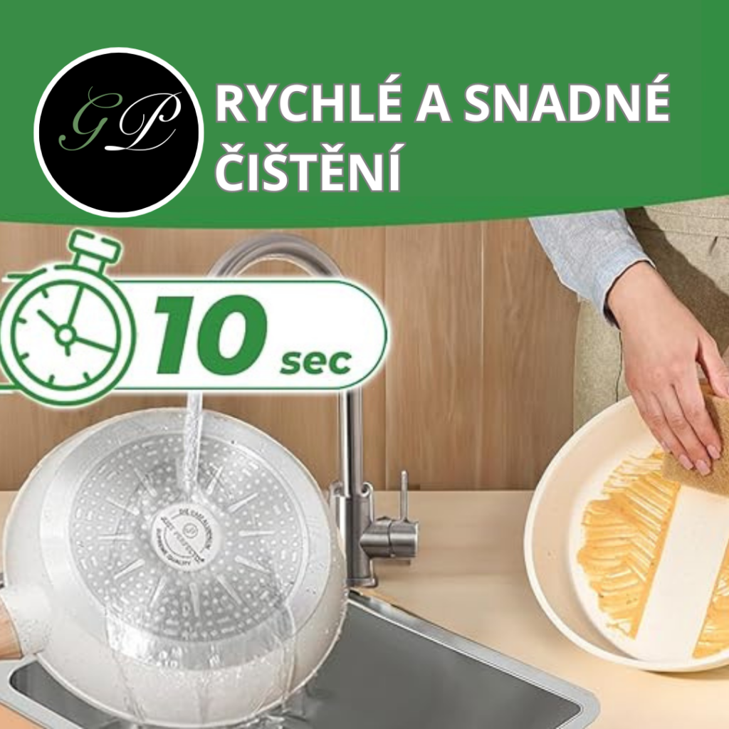 Sada kameninového a nepřilnavého nádobí nabízí výjimečný zážitek z vaření. Čištění po každém použití bude hračka pod horkou vodou. Užijte si úžasné výsledky a pohodlí, které nabízí naše sada!