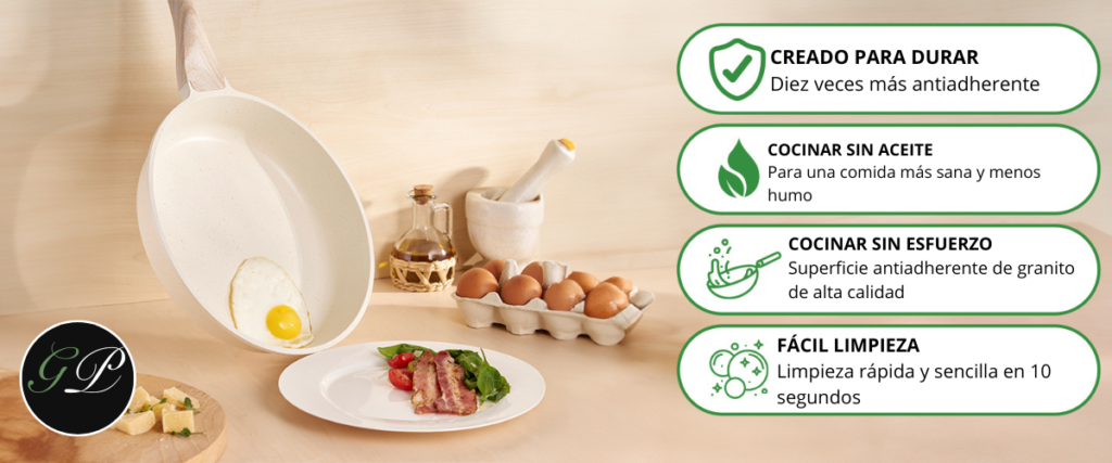 Con tecnología de granito y rendimiento Ultra Antiadherente 5x, su superficie ofrece un excelente rendimiento antiadherente y es fácil de limpiar después de cocinar. Estas sartenes premium de aluminio fundido con tapa ofrecen una excelente conducción del calor.