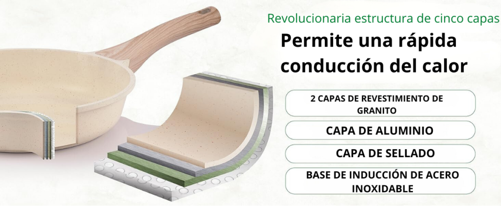 Nuestra versátil colección de sartenes y ollas de inducción le permite cocinar sin estrés en su cocina. Gracias a su revestimiento antiadherente de alta calidad, libre de PTFE y PFOA, disfrutará cocinando sin que se pegue ni deje residuos pegajosos. Estas sartenes antiadherentes le permiten preparar deliciosos platos con poco aceite. Puede estar seguro de que nuestros juegos de ollas y sartenes son una opción confiable para una cocina saludable.
