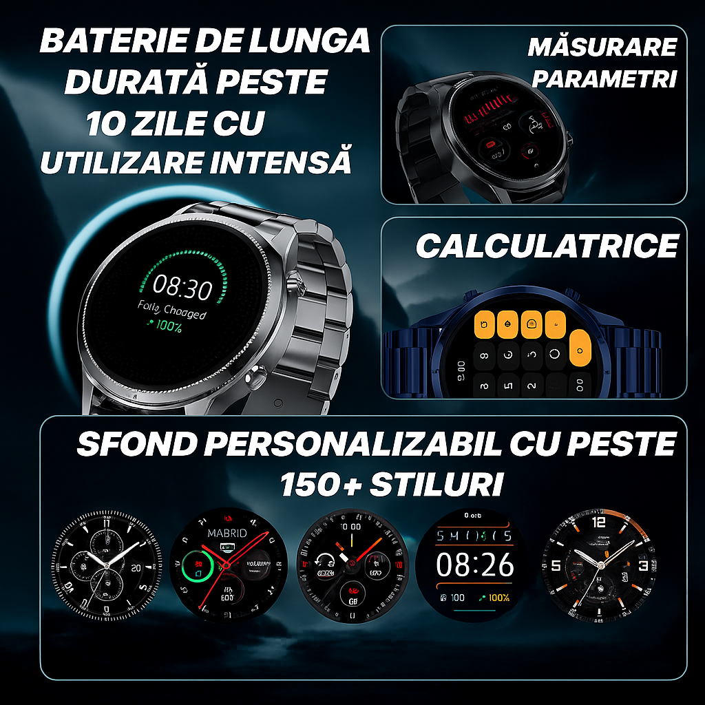 Folosesc acest smartwatch zilnic la muncă: preiau apeluri, citesc mesaje și verific agenda fără să ating telefonul. Elegant, confortabil și precis în monitorizarea sănătății. În sfârșit, un ceas inteligent care nu arată ca o jucărie. Ideal pentru cei care vor eficiență și stil în același timp.