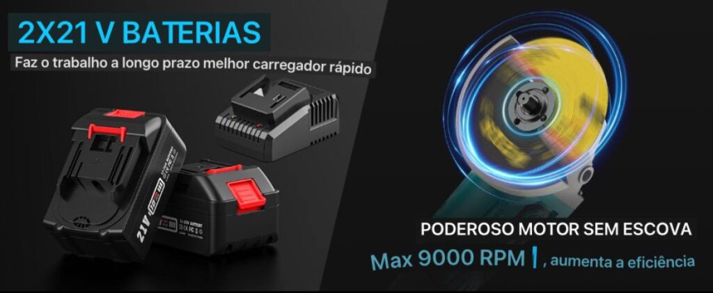 Experimente uma potência extraordinária com o motor sem escovas que atinge até 9000 RPM. Ideal para cortar metal e remover ferrugem, oferece um excelente desempenho e um funcionamento silencioso, tornando cada trabalho rápido e seguro.