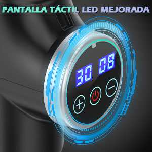 Mantenga presionado el botón de encendido durante 2 segundos para encender. La pantalla táctil LCD muestra claramente la electricidad y la intensidad, lo que ayuda a ajustar la intensidad con precisión y conocer los niveles de energía, comprender el estado del dispositivo de masaje.