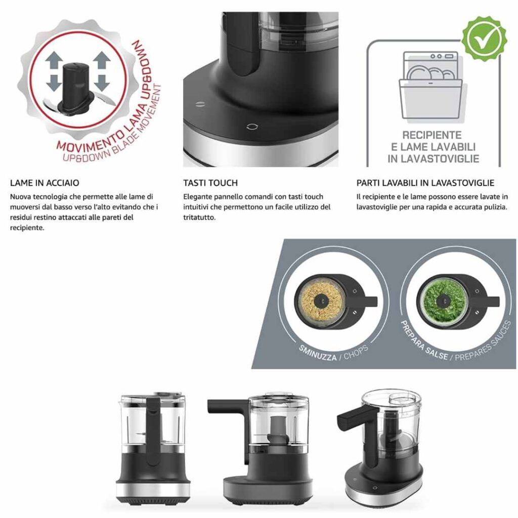 Grazie al motore da 300W e al sistema di taglio bilanciato, puoi ottenere triti rapidi e omogenei con un solo gesto.