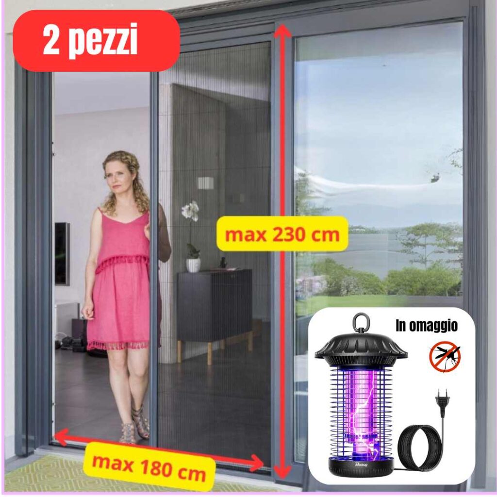 Grazie al cursore laterale con frizione, la zanzariera può essere bloccata in qualsiasi punto, offrendo massima praticità e libertà d’uso. Compatibile con ogni tipo di porta o finestra, grazie al kit di installazione fornito